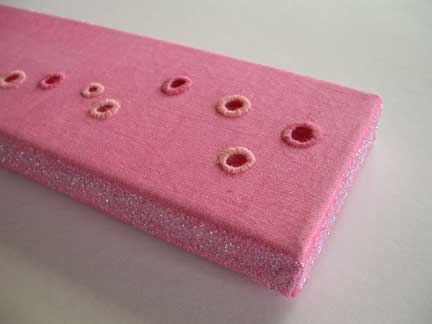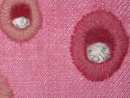 , details, 4.5"h x 16"w x 2"d, embroidered wool on hand-dyed linen twill with glitter, dec 2004