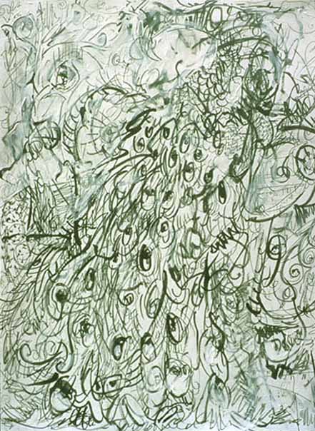 acrylic, charcoal & thread on paper, 1991