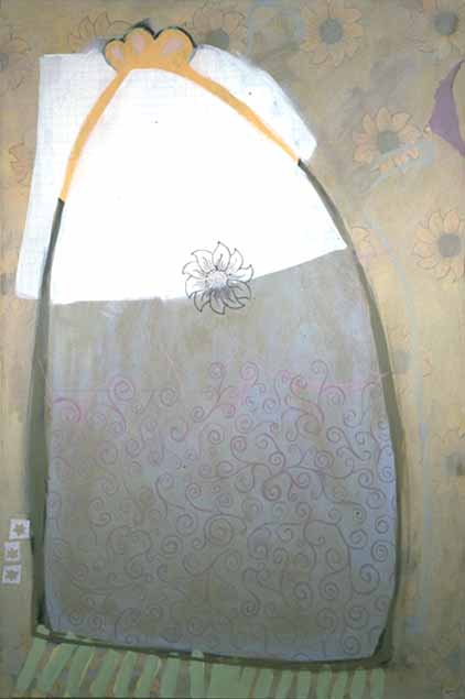 60"h x 40"w, acrylic, paper & thread on linen, 1996
