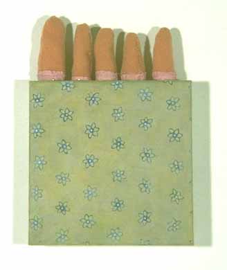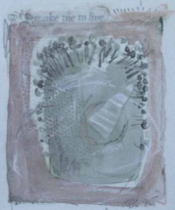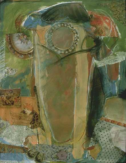 5"h x 4"w, watercolor, pencil, pastel, paper & fabric on paper, 1995