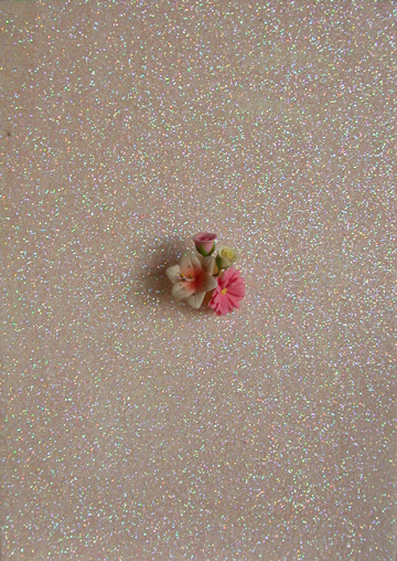7"h x 5"w, glitter and found glass on paperboard, 2004