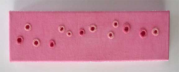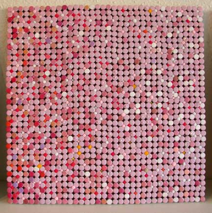 12"h x 12"w, paint, beads and glitter on found foam buttons, 2004